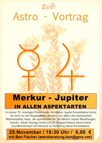 Di., 25.11. "Merkur - Jupiter-Konstellationen in allen Aspektarten". Vortrag mit Ben Fischer (18.30h / 6€)