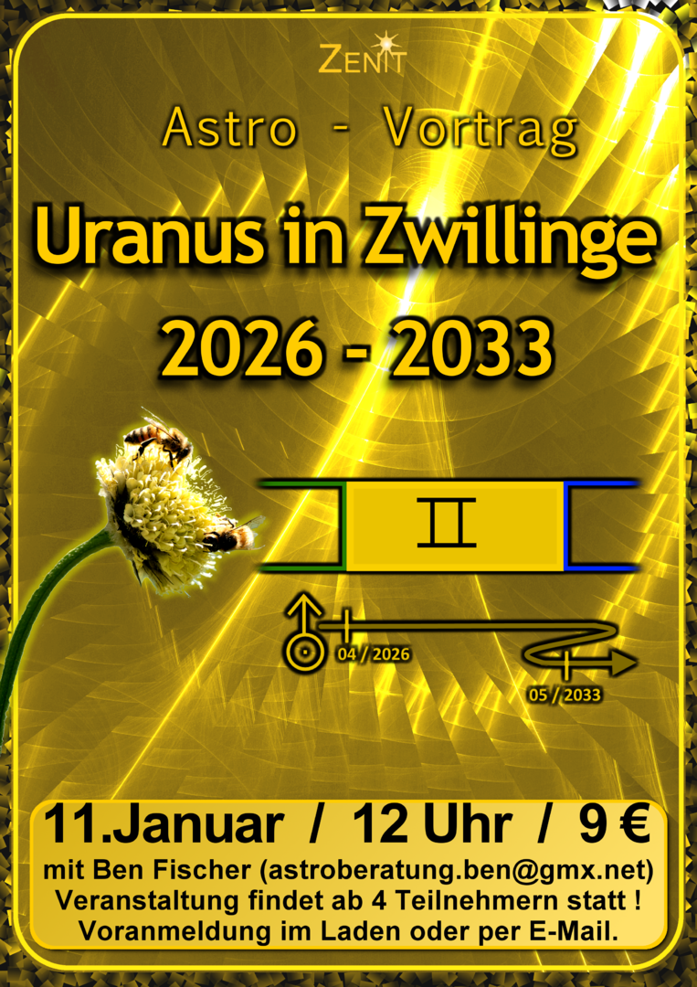 So. 11.01. Uranus in den Zwillingen. Astro Vortrag mit Ben Fischer (12 Uhr / 9€)