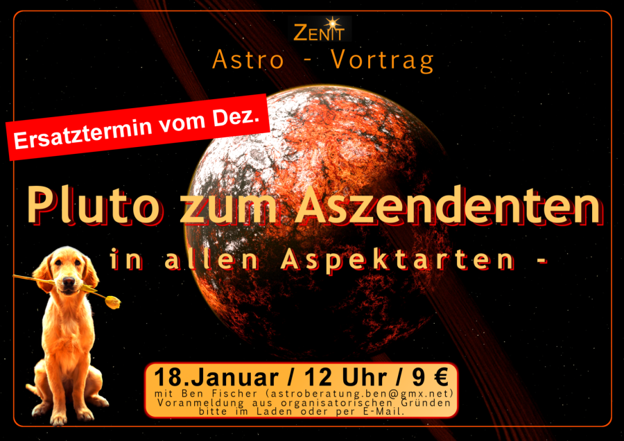 So., 18.01 Astrovortrag "Pluto AC in allen Aspektarten" mit Ben Fischer (12 Uhr/ 9€)